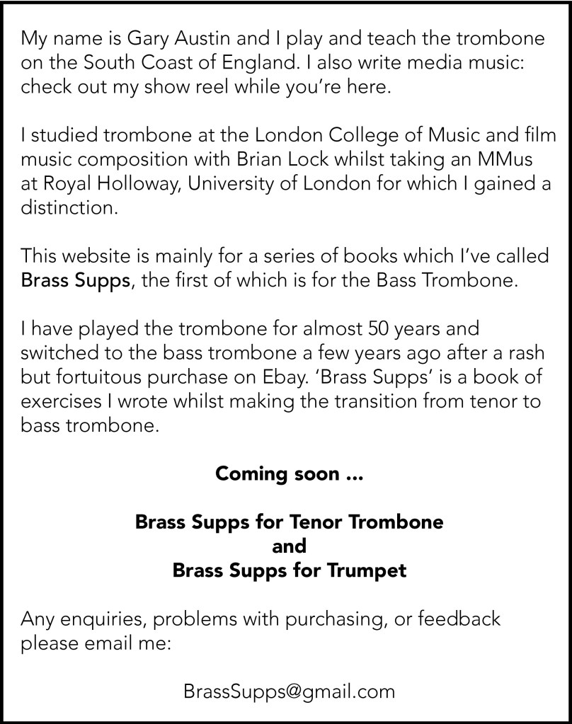 About Me Buy Brass Supps for Bass Trombone See My Show Reel Share this: Share on X (Opens in new window) X Share on Facebook (Opens in new window) Facebook Like Loading...